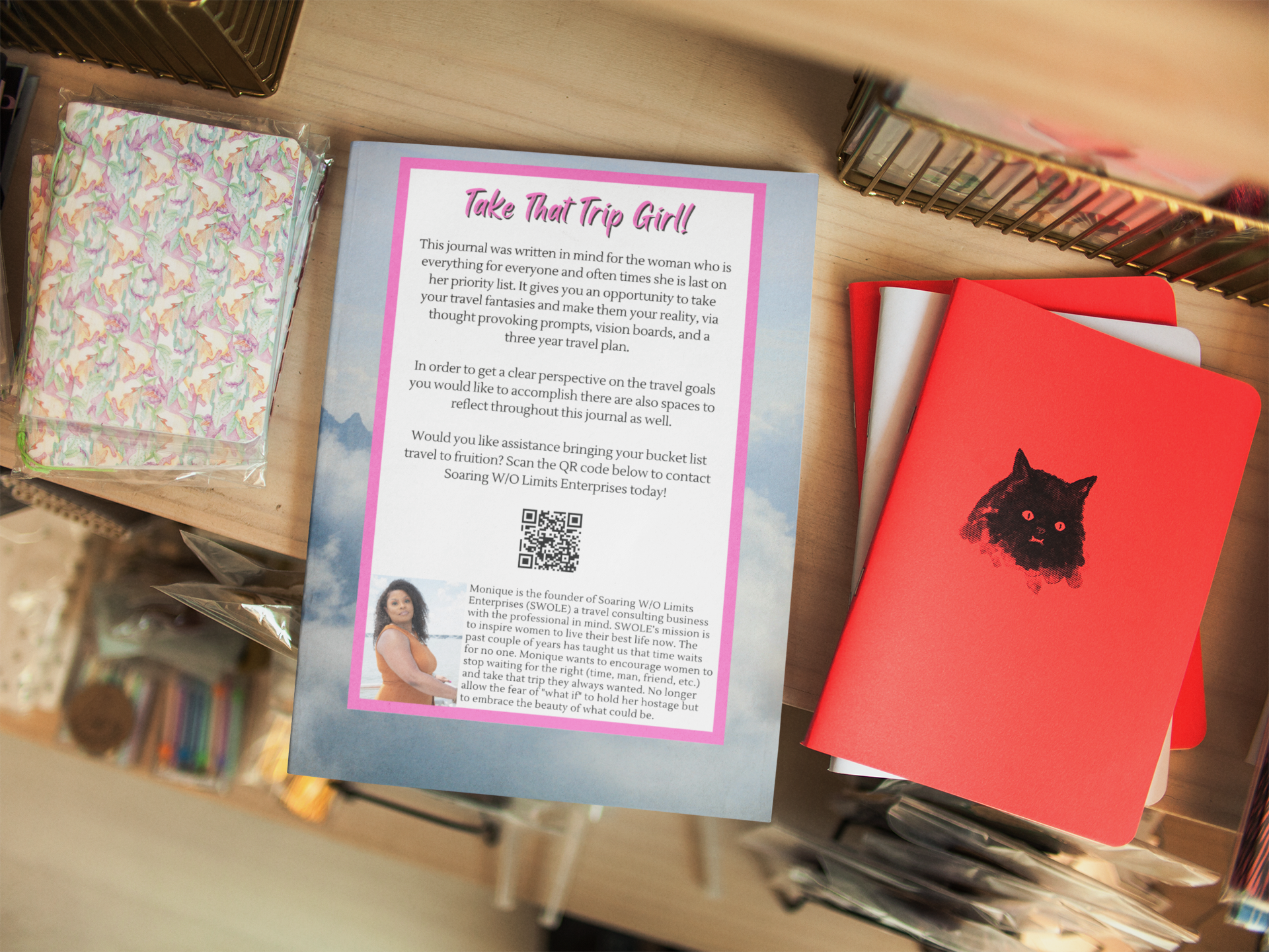 This journal was written in mind for the woman who is everything for everyone and often times she is last on her priority list. It gives you an opportunity to take your travel fantasies and make them your reality, via thought provoking prompts, vision boards, and a three year travel plan.